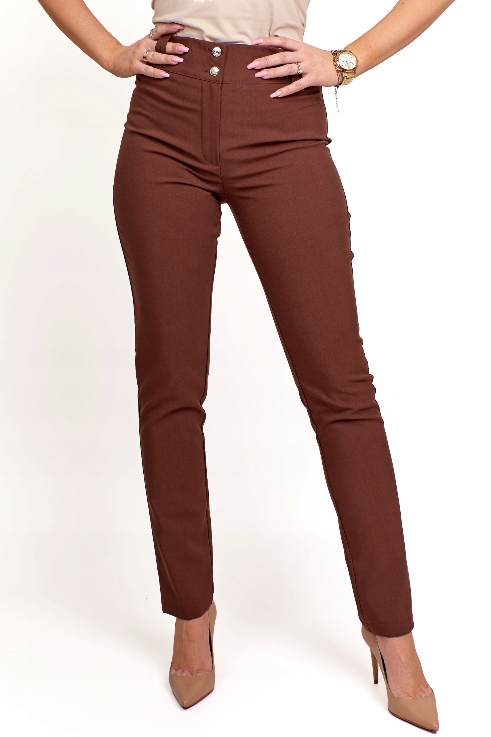 Klasyczne spodnie Anet kolor czekoladowy plus size rozmiar L