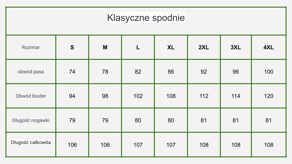 Spodnie dostępne w kilku wariantach kolorystycznych.
