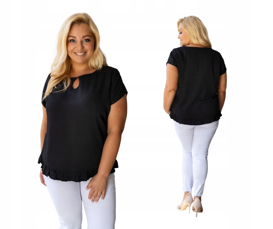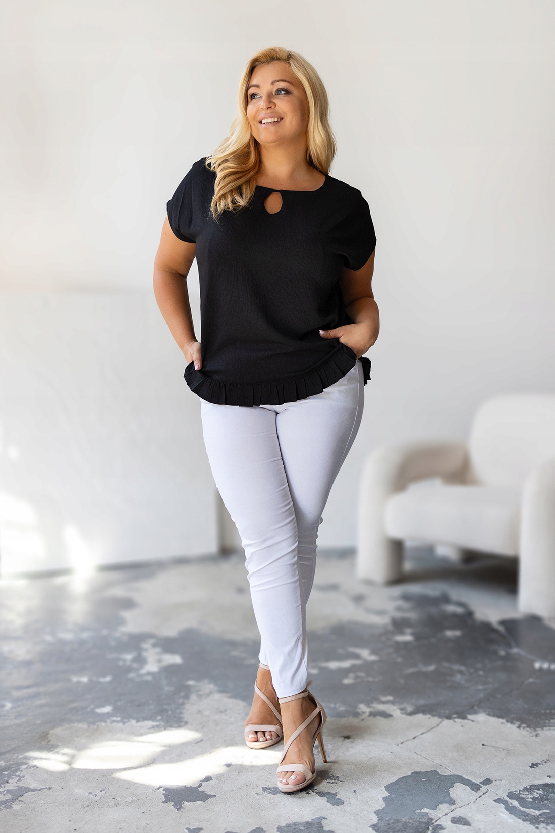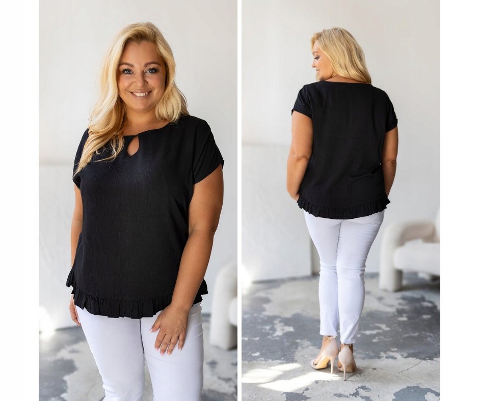 Bluzka SANDRA krój kimono  z  falbaną kolor czarny rozmiar 56