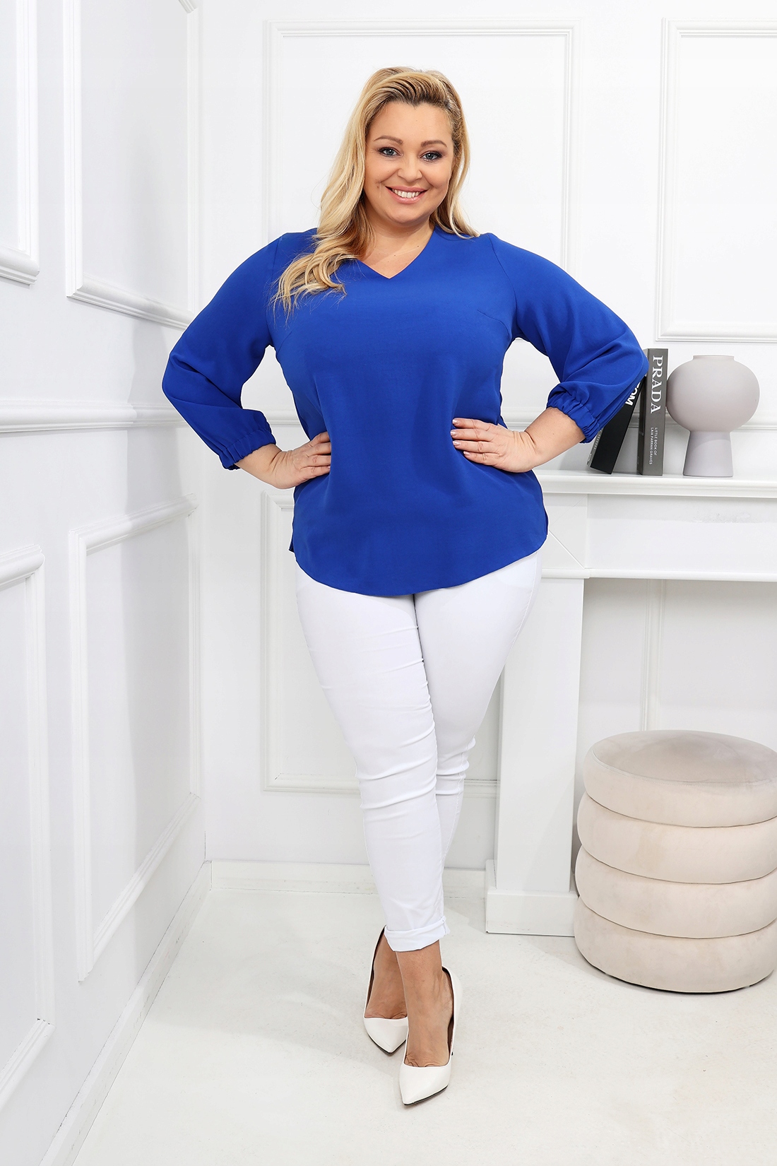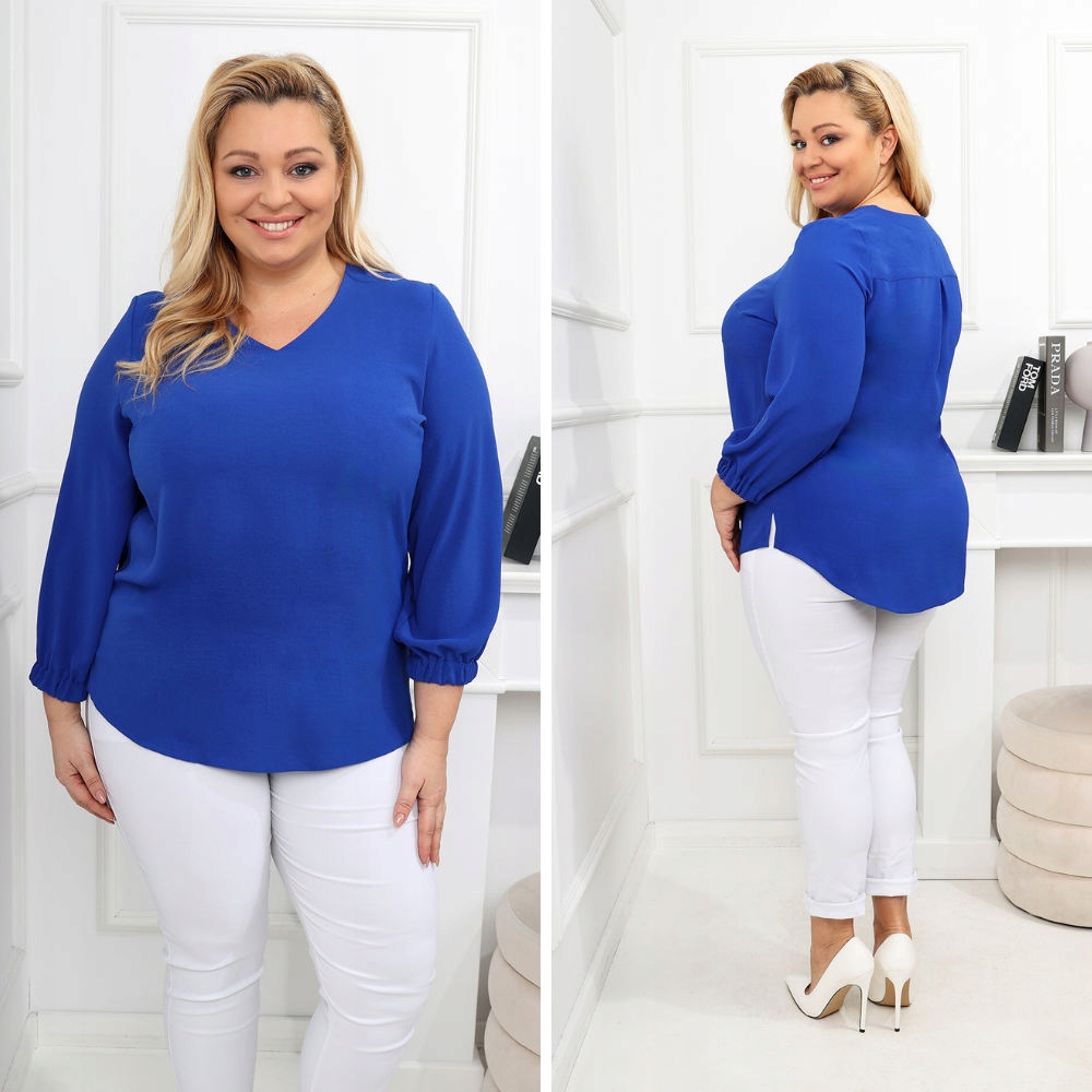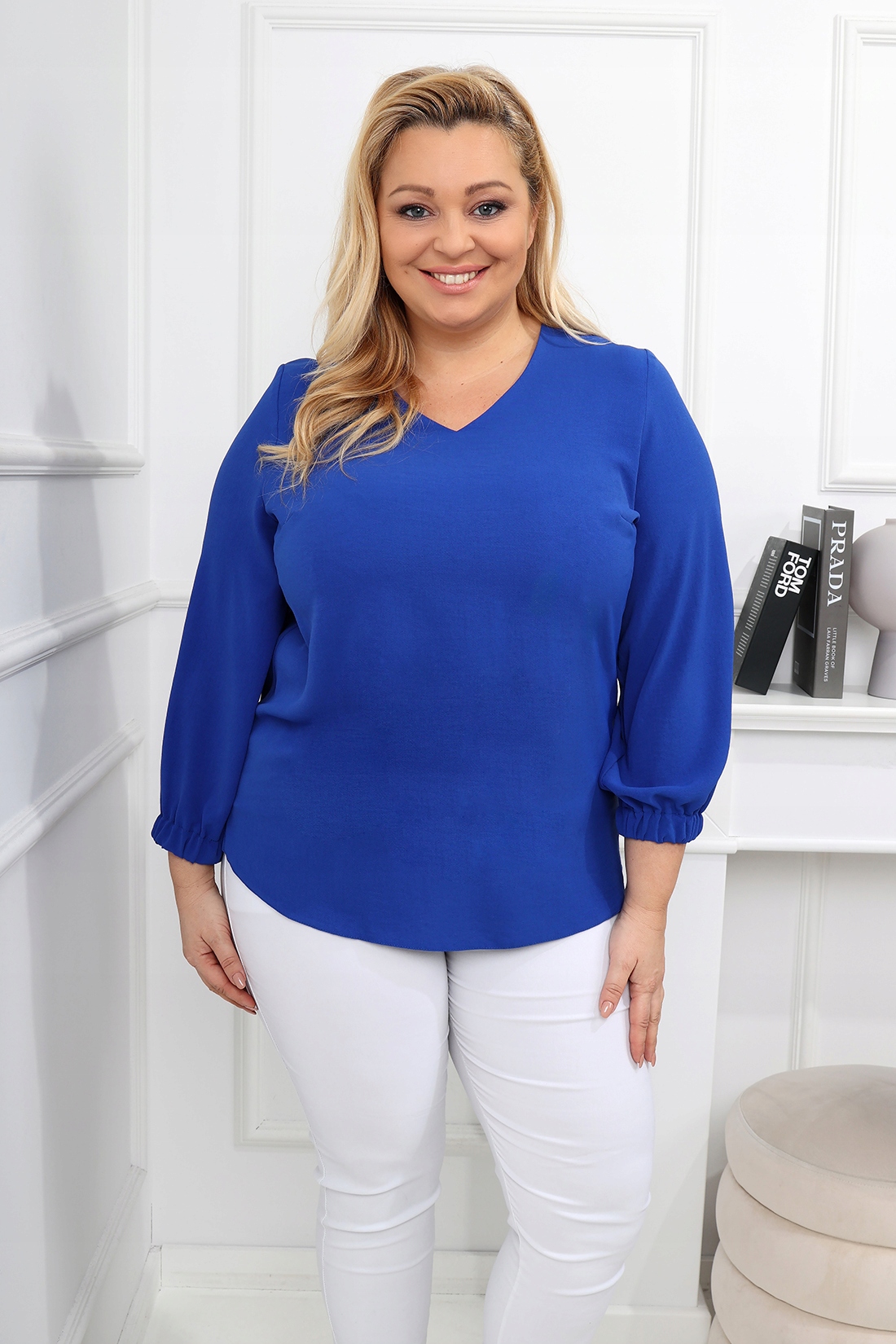 Bluzka SANDRA z dekoltem w serek kolor chabrowy rozmiar 44