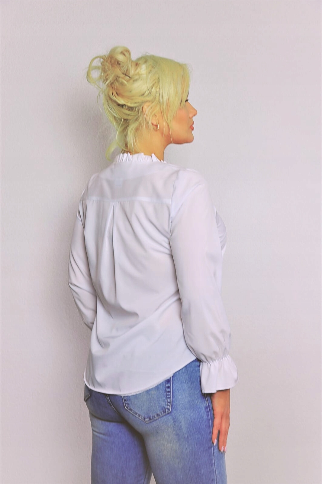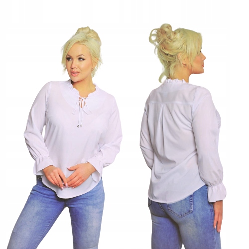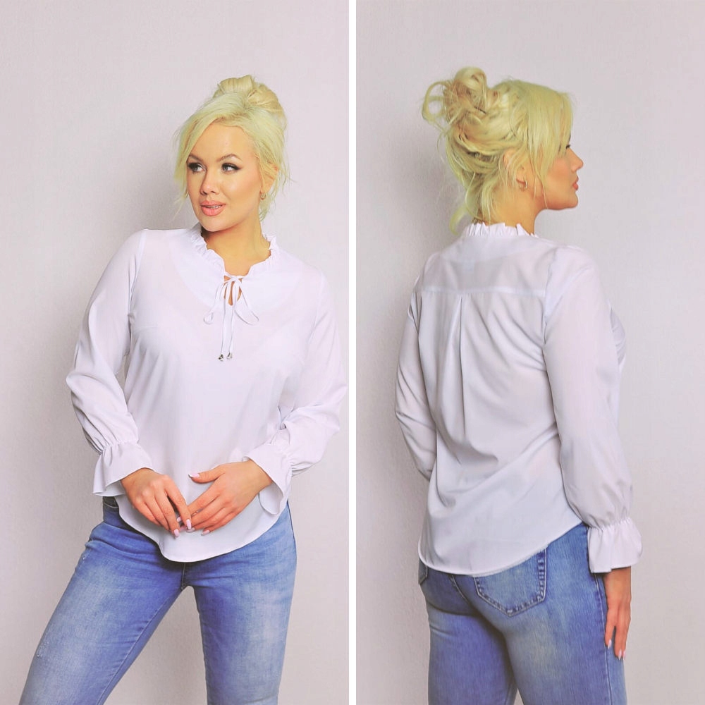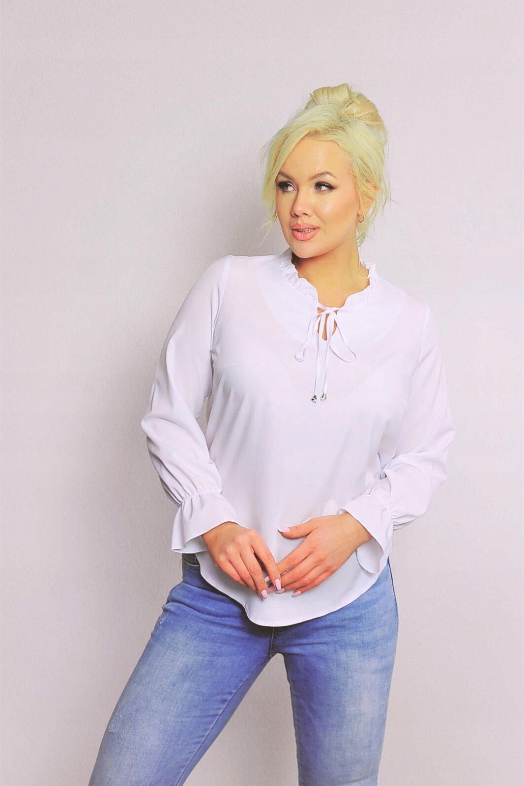 Bluzka Sandra z falbanką i wiązaniem kolor biały rozmiar 44