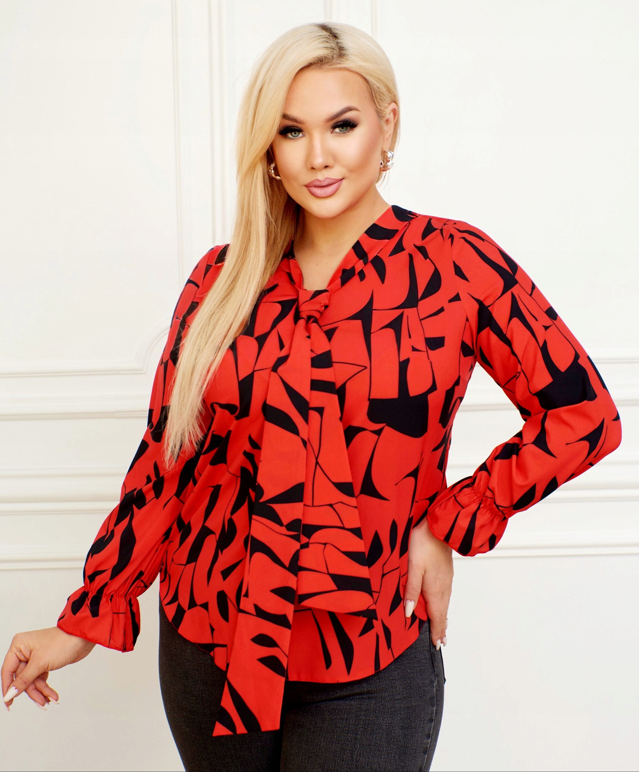 Bluzka Sandra z fontaziem czerwono-czarny wzór rozmiar 46