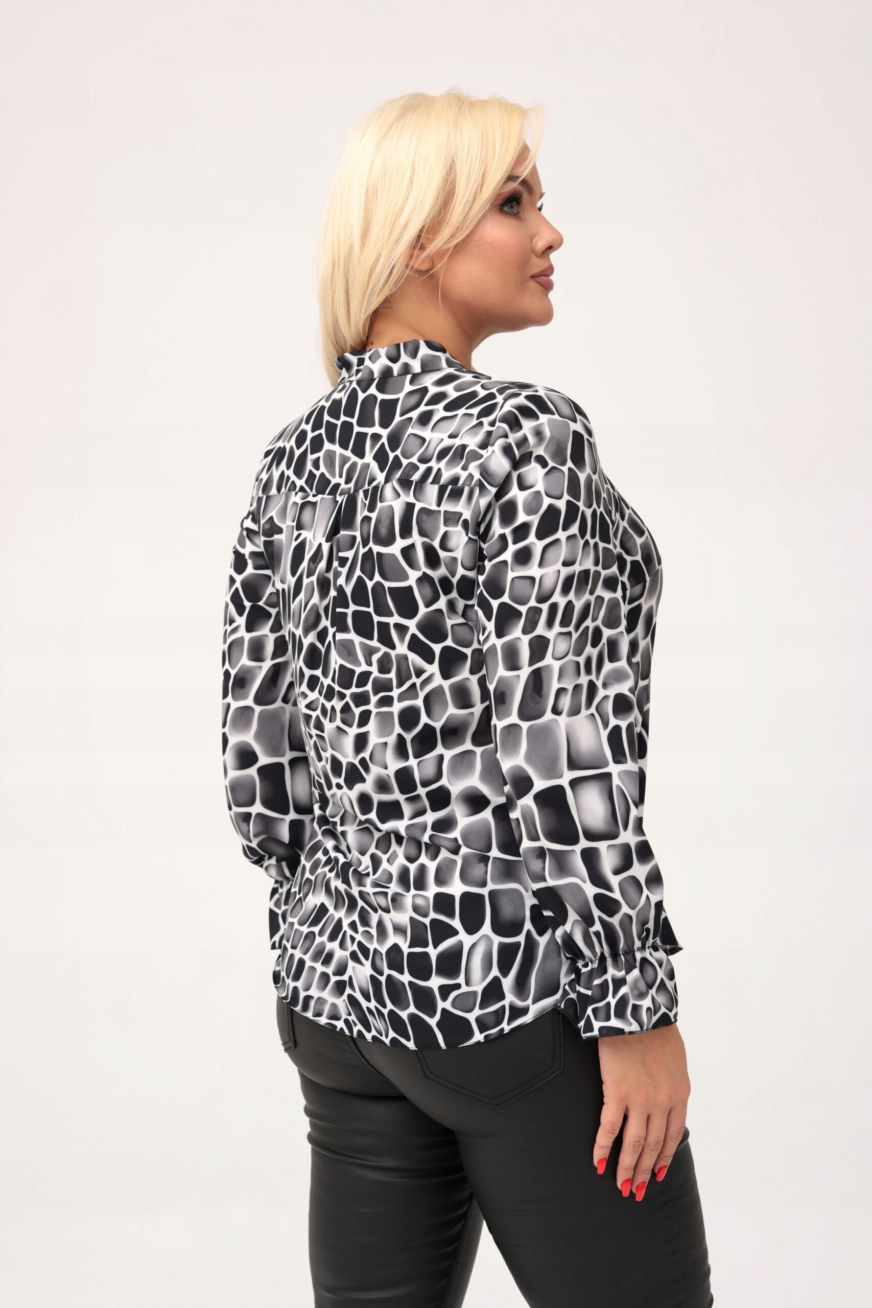 Bluzka Sandra z fontaziem wzór kostka czarna rozmiar 56