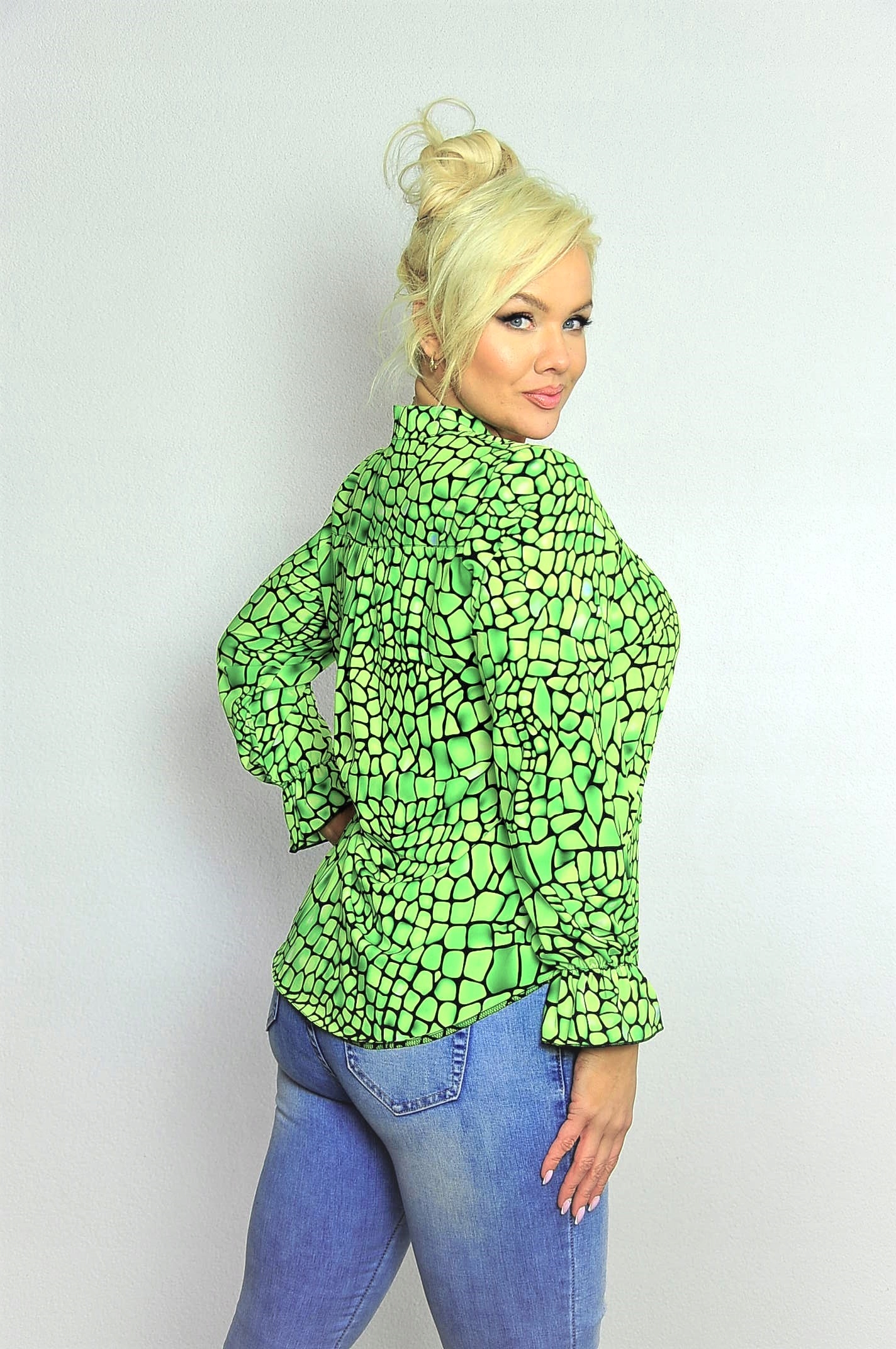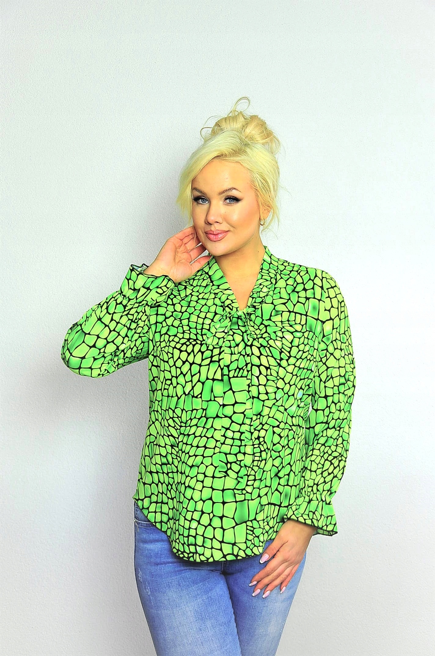 Bluzka Sandra z fontaziem wzór kostka seledyn rozmiar 56