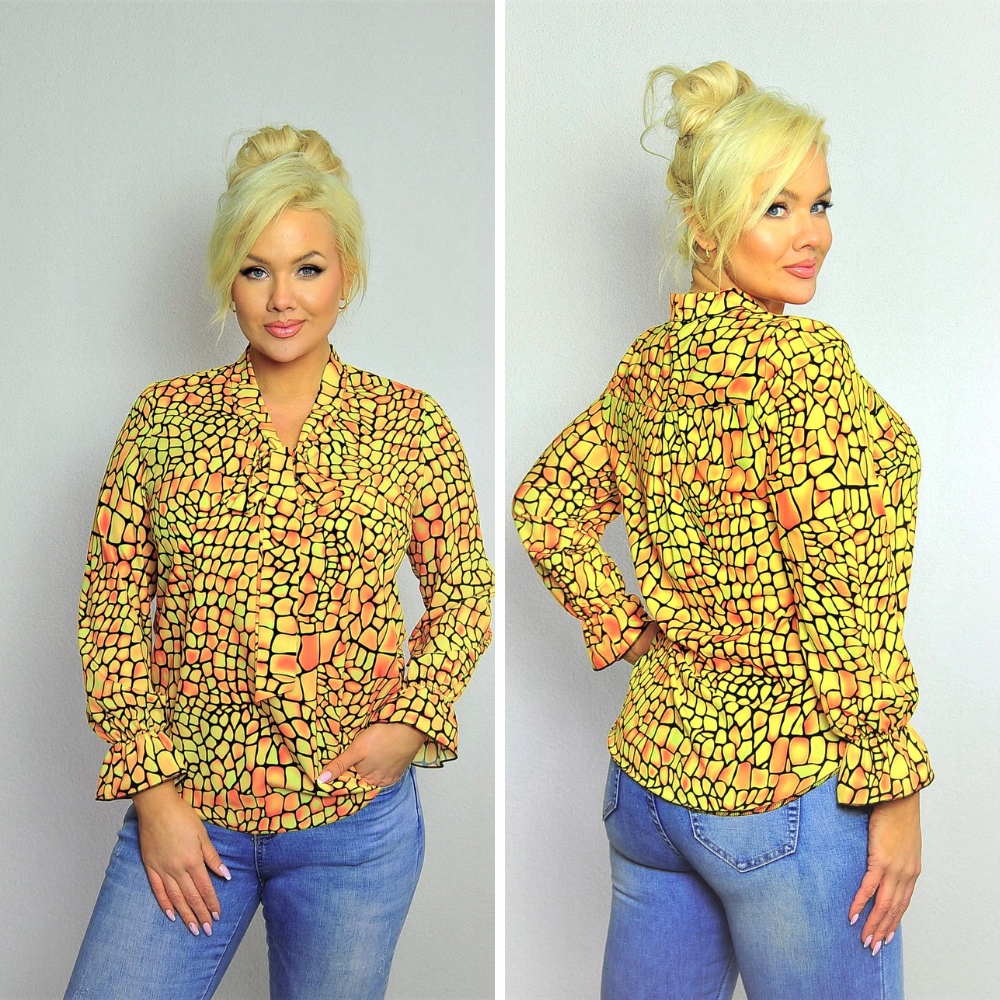 Bluzka Sandra z fontaziem wzór kostka żółta rozmiar 54