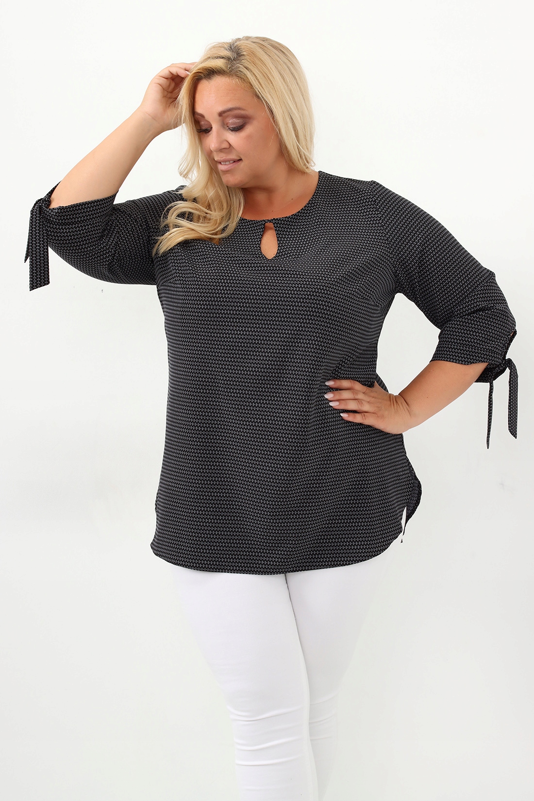 Casualowa tunika SANDRA o taliowanym kroju wzór czarny rozmiar 48