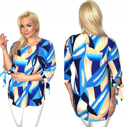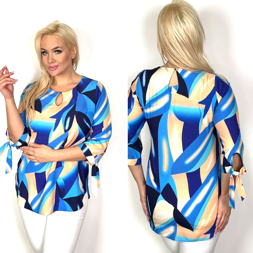 Casualowa tunika SANDRA wzór chabrowo – bananowy rozmiar 58