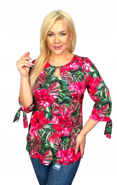 Casualowa tunika SANDRA wzór malwa czerwono-zielona rozmiar 48