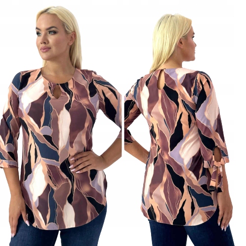 Casualowa tunika SANDRA wzór mozaika w beżu rozmiar 56