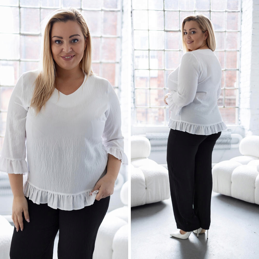 Casualowa tunika Sandra z falbankami kolor biały rozmiar 56