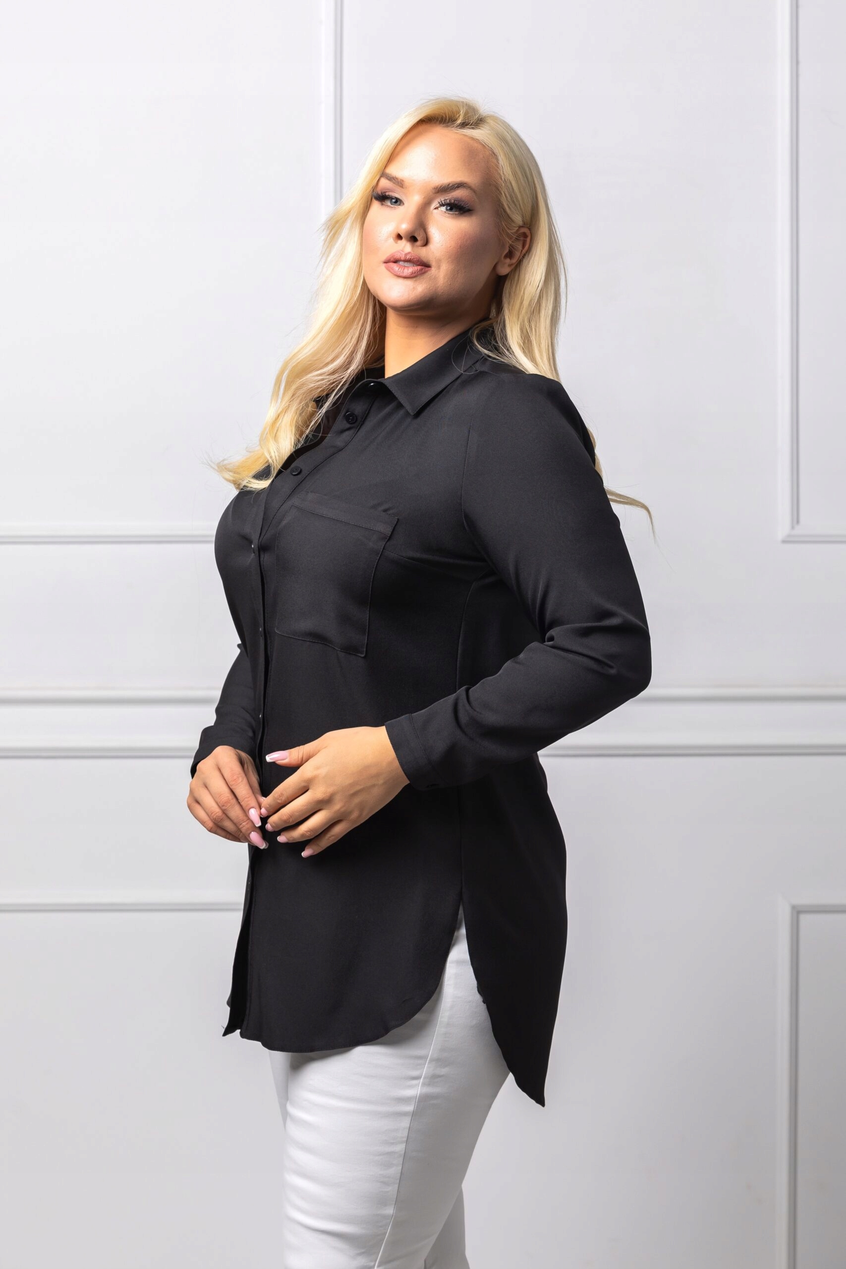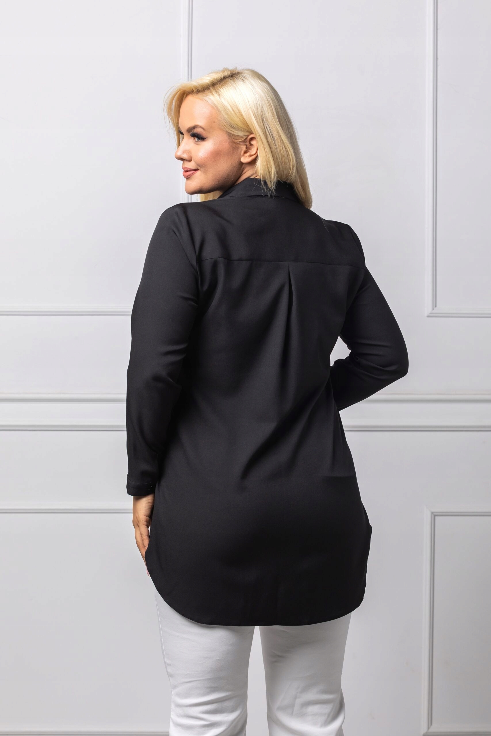 Długa elegancka koszula SANDRA o prostym kroju kolor czarny rozmiar 46