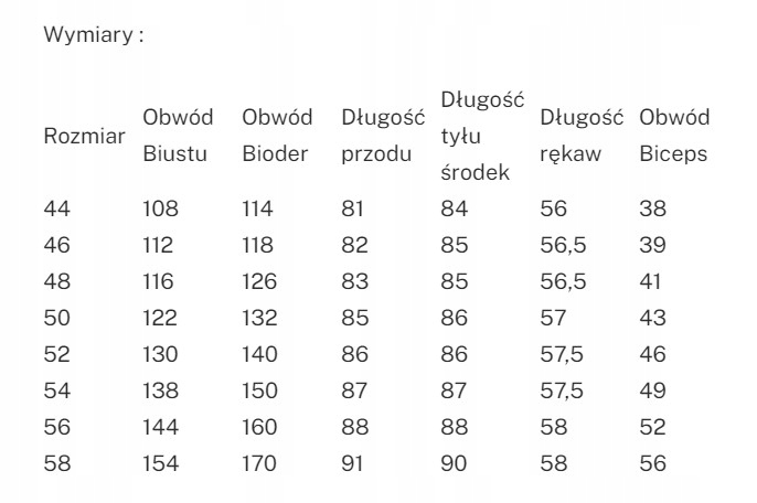 Aby dobrać odpowiedni rozmiar, pamiętaj, że podane wymiary w tabeli dotyczą produktu mierzonego na płasko.