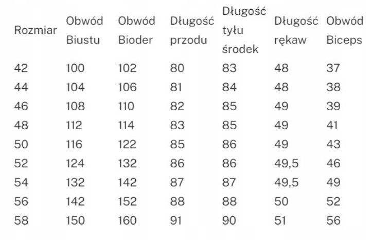 Przy wyborze rozmiaru zalecam kierować się wymiarami podanymi w tabeli poniżej.
