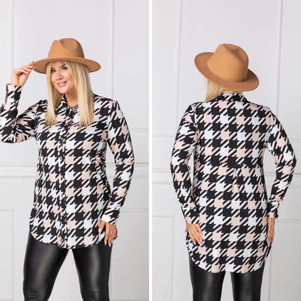 Długa elegancka koszula SANDRA wzór kontrastowy rozmiar 48