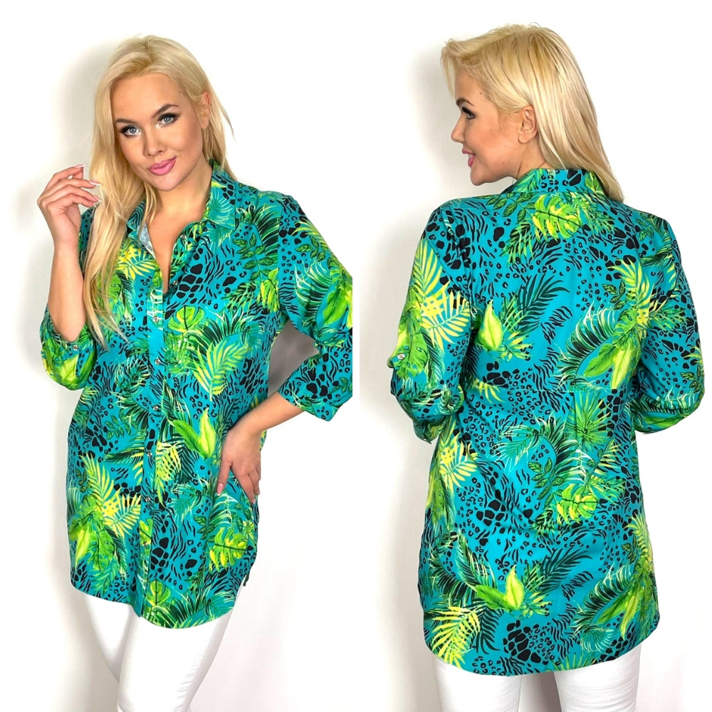 Długa elegancka koszula w kontrastowy wzór.
