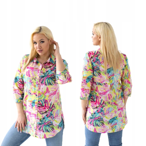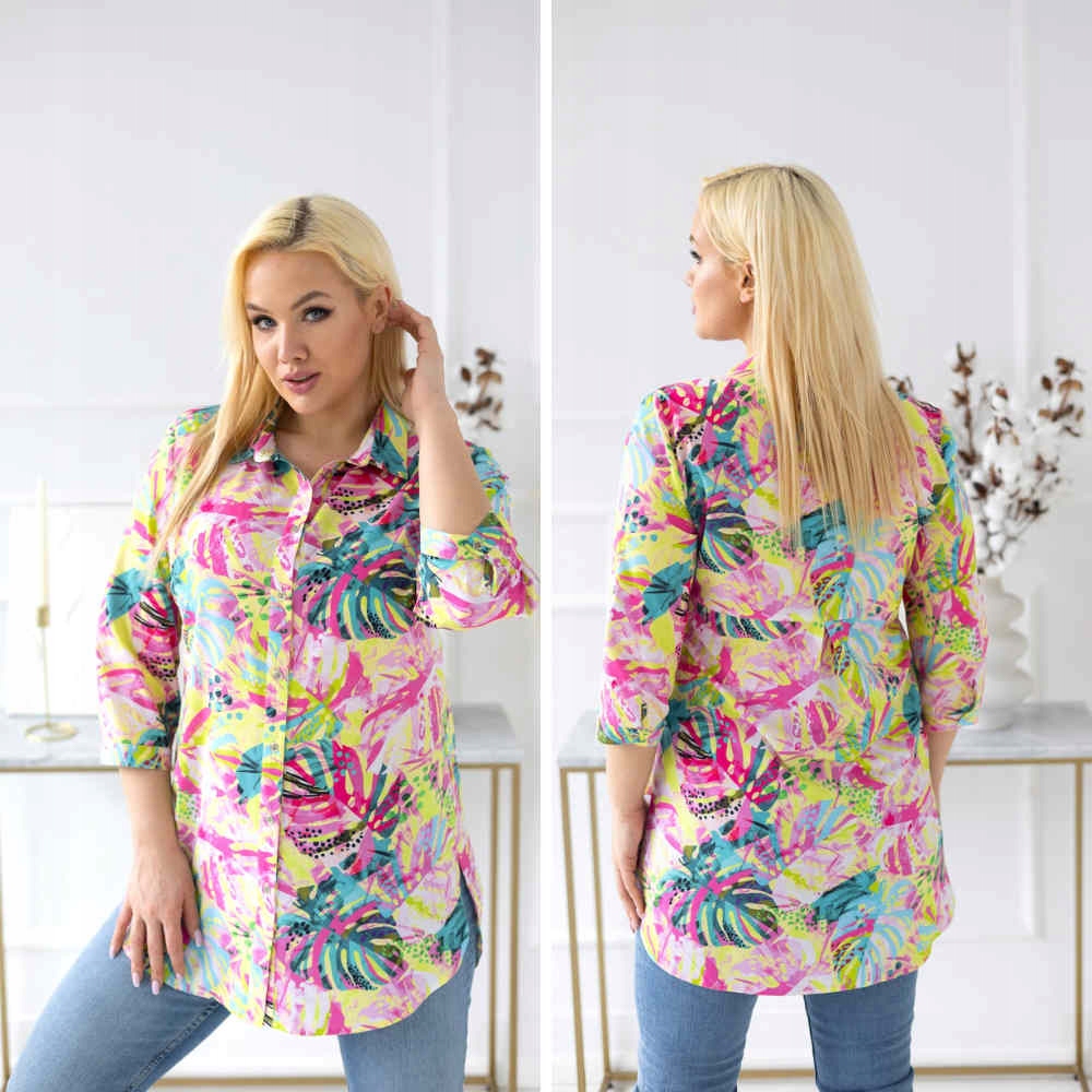 Długa elegancka koszula SANDRA wzór rododendron cytryna rozmiar 50