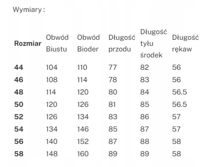 PRZED ZAKUPEM ZALECAM SPRAWDZENIE WYMIARÓW W TABELACH.