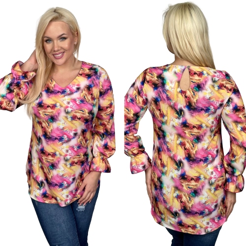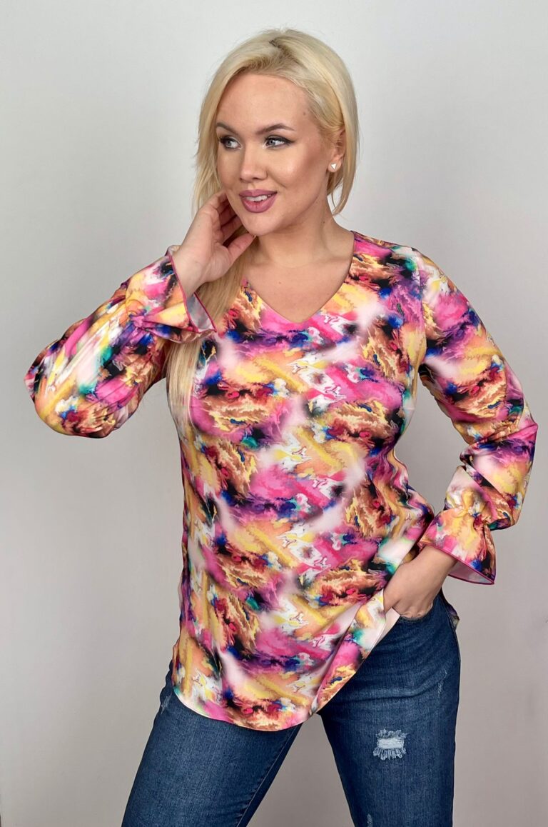 Elegancka bluzka Sandra wzór różowe plamy rozmiar 54