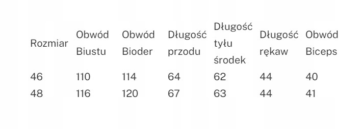 PRZED ZAKUPEM ZALECAMY SPRAWDZENIE WYMIARÓW W TABELI.