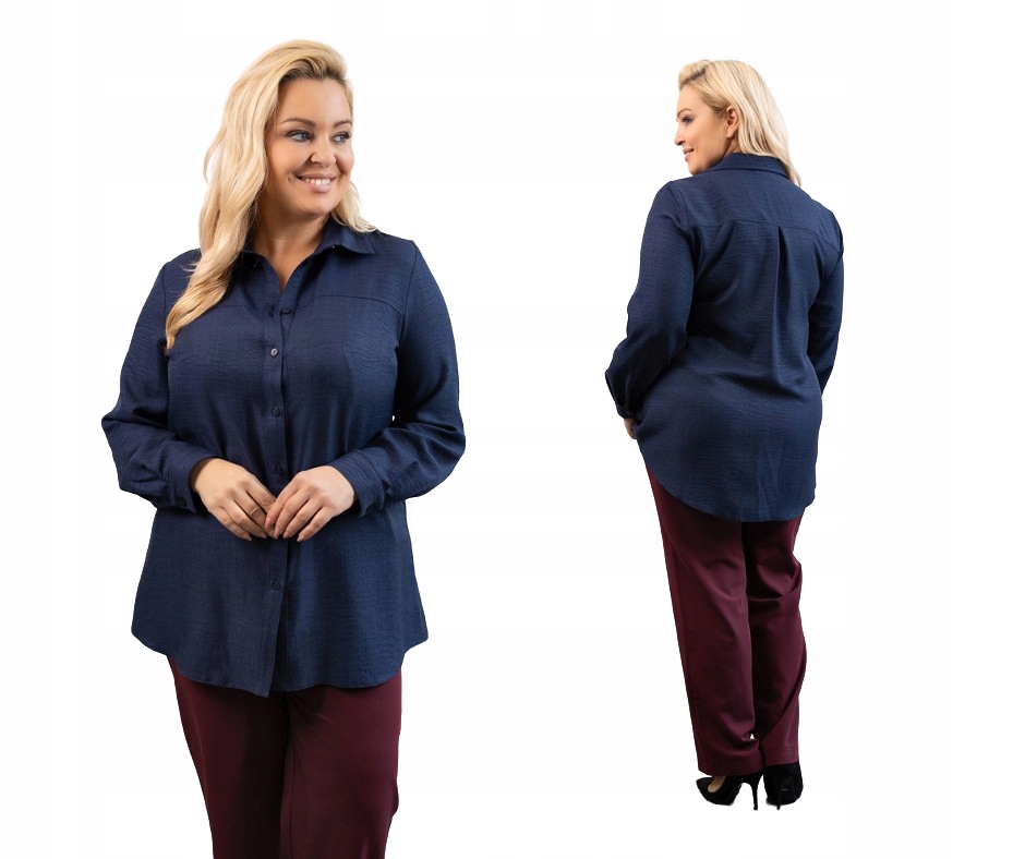 Nasza koszula, dzięki krojowi w literę A, doskonale podkreśla sylwetki typu gruszka i prostokąt, idealnie pasując także wysokim kobietom.