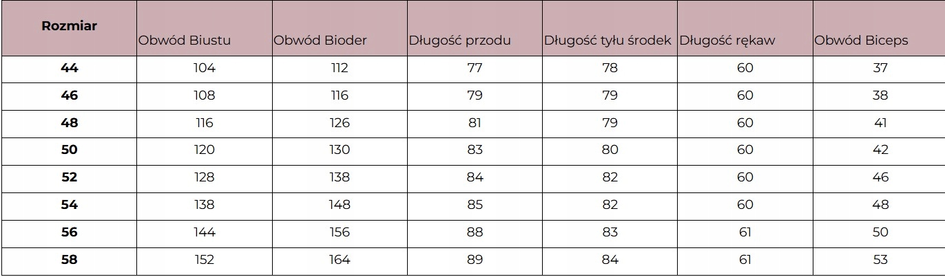 Twój wymiar powinien być mniejszy o 4-6 cm od wartości podanej w tabeli.