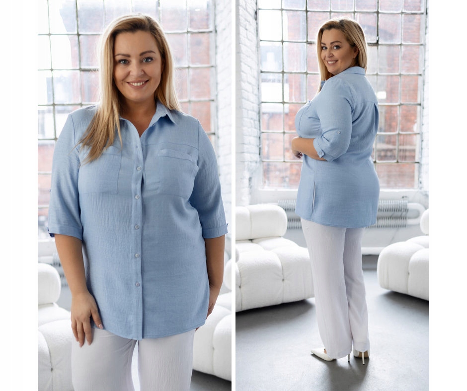 Elegancka koszula Sandra w stylu safari kolor błękitny rozmiar 48