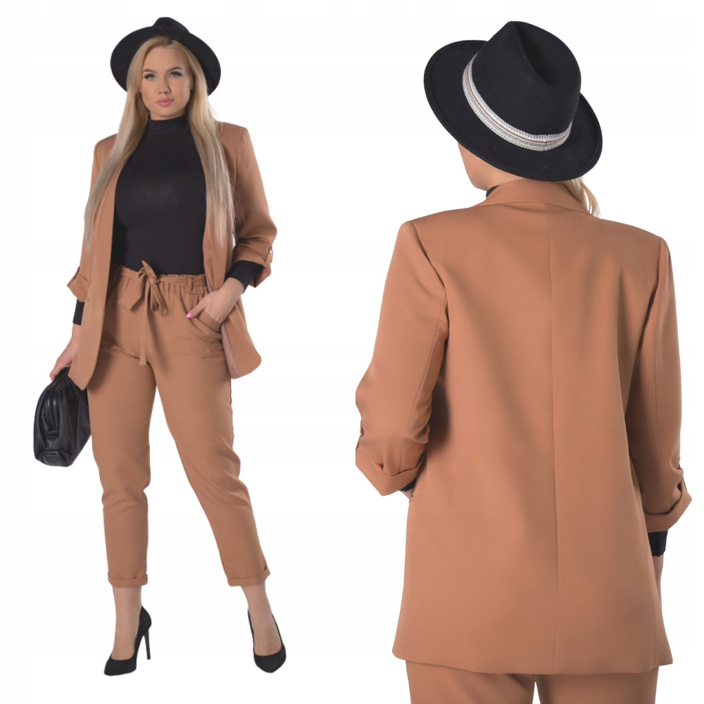 Garnitur damski ANET plus size (S–5XL), kolor kamel – szyty na zamówienie
