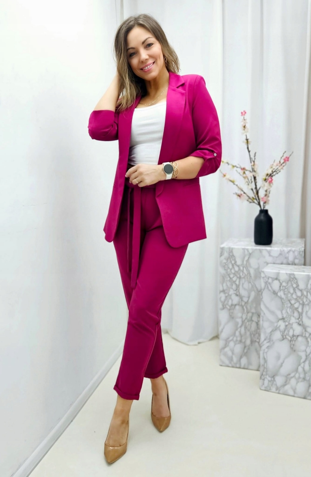 Garnitur damski ANET plus size (S–5XL), kolor magenta– szyty na zamówienie