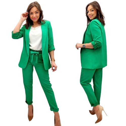 Żakiet i spodnie pochodzą z tej samej partii materiału, dlatego nie występują różnice w odcieniach kolorystycznych między elementami zestawu.
