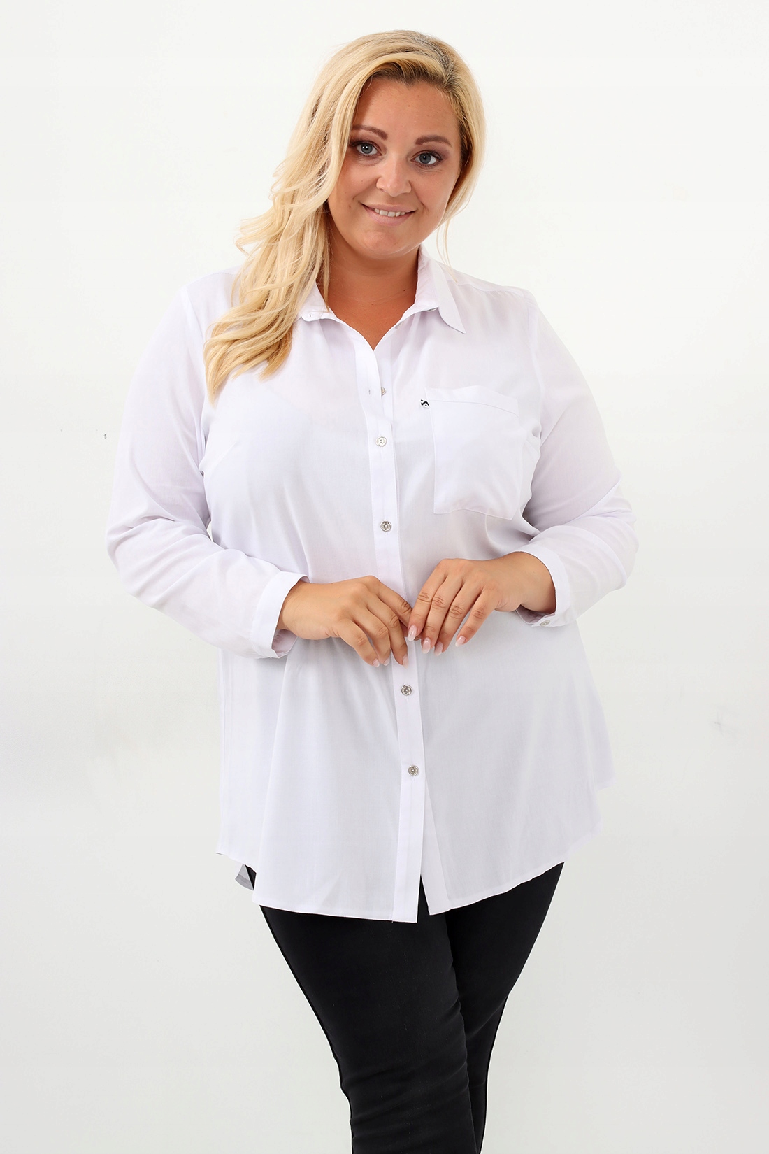Klasyczna elegancka koszula SANDRA o prostym kroju kolor biały rozmiar 46