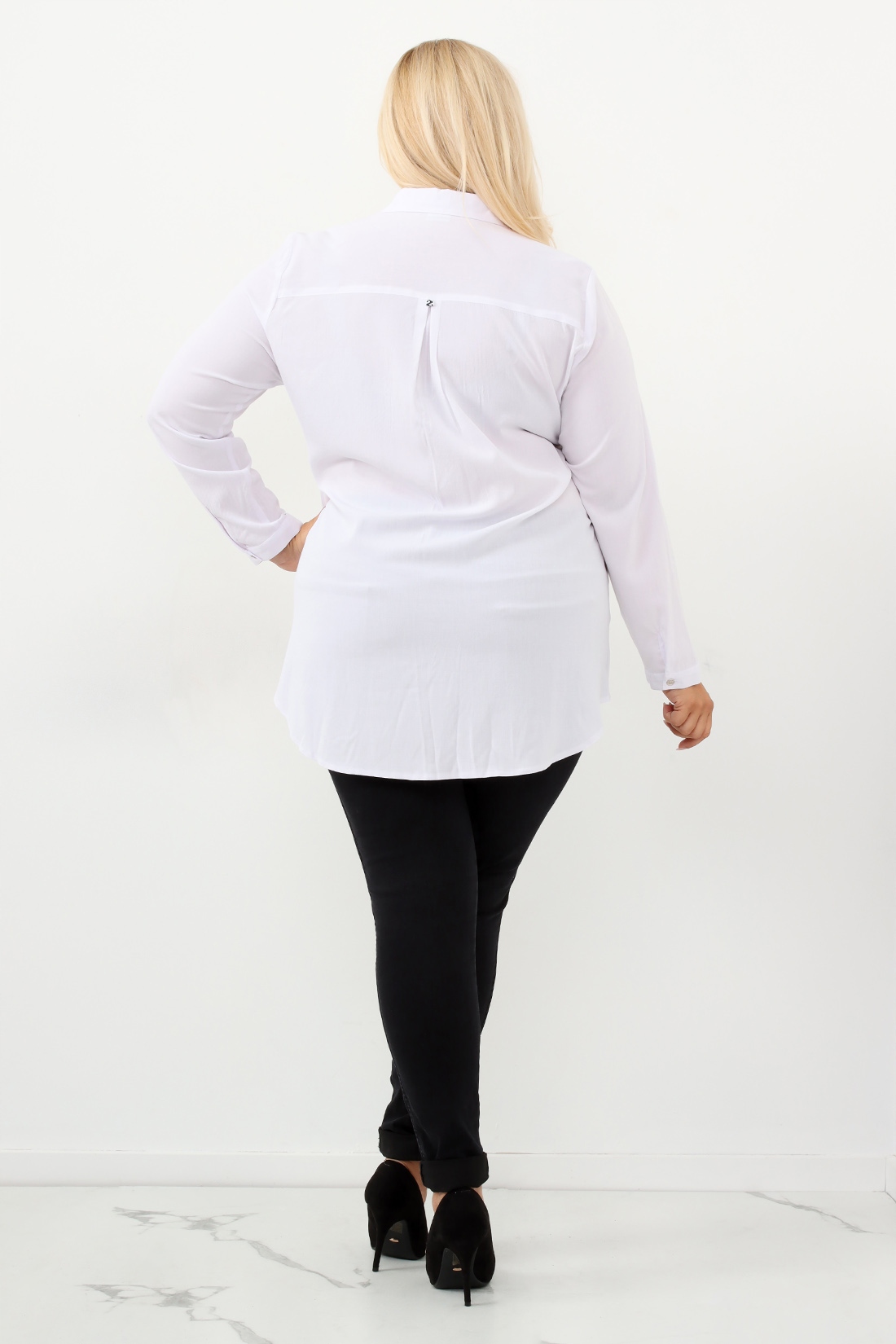 - Fason: Prosty krój, długość poniżej linii bioder