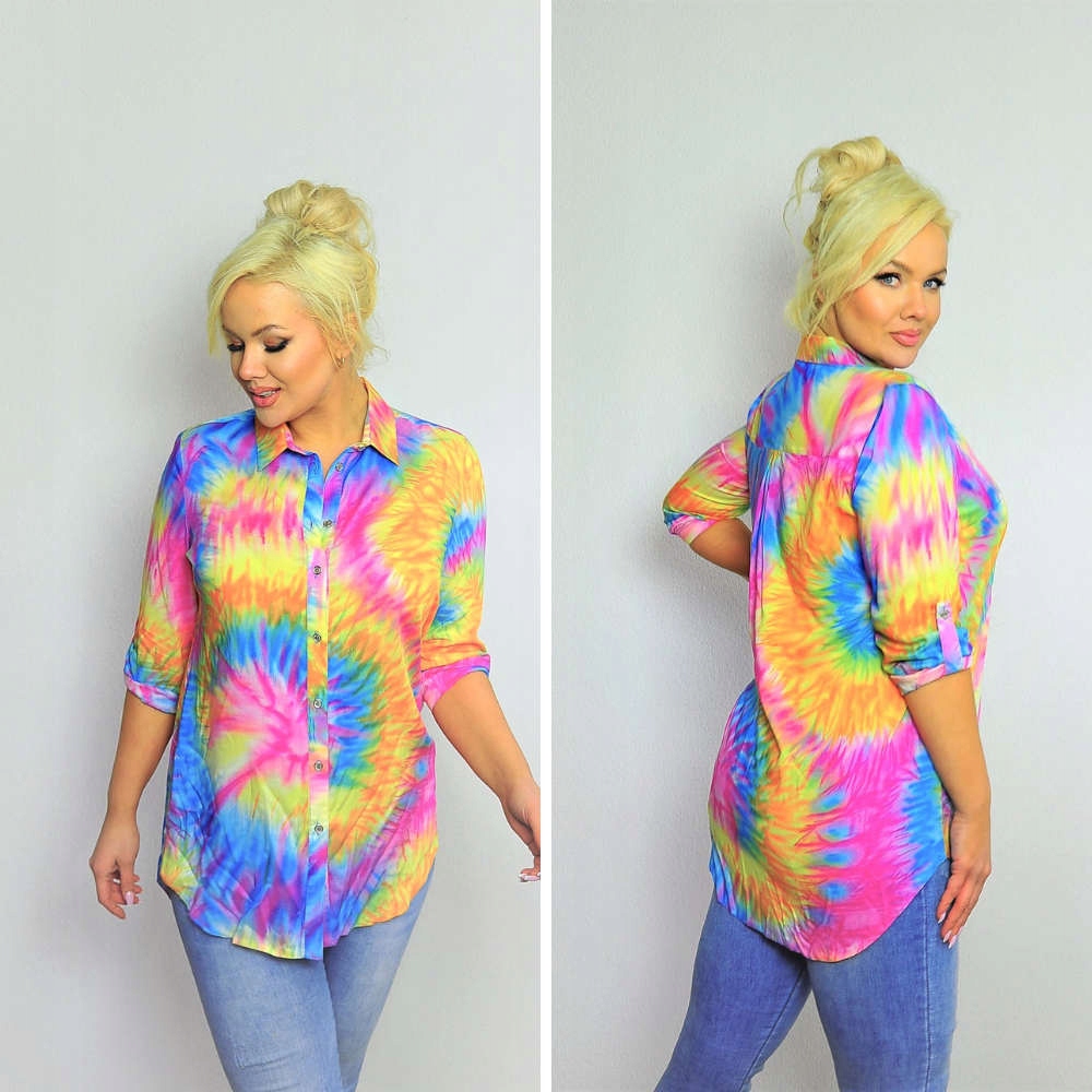 Koszula Sandra wzór słońce różowo- żółte bawełna 100% rękaw 3/4 rozmiar 56