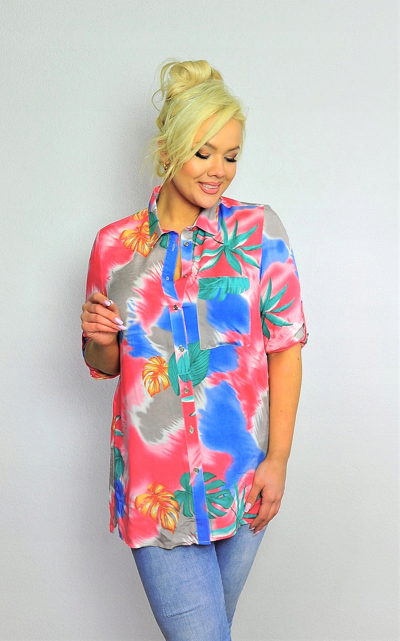 Koszula Sandra wzór liść beżowy rękaw 3/4 rozmiar 58