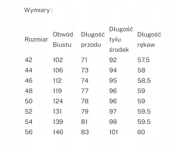 Twój wymiar powinien być mniejszy o 4-6 cm od wartości podanej w tabeli.
