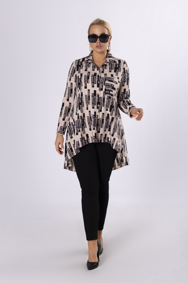 Koszula z wydłużonym tyłem wzór literki na beżowym tle rozmiar 54