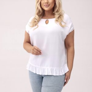 Bluzka SANDRA krój kimono z falbaną kolor biały rozmiar 58