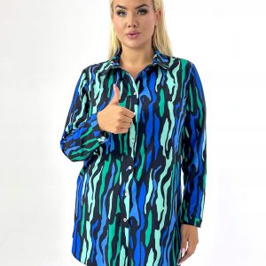 Długa elegancka koszula SANDRA wzór farby chaber zielone rozmiar 56