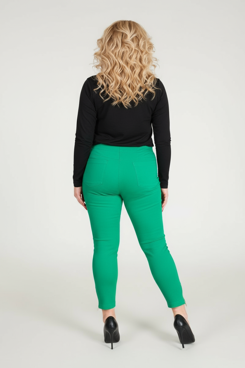 Długość 7/8 , zwężana nogawka,zamek na dole.