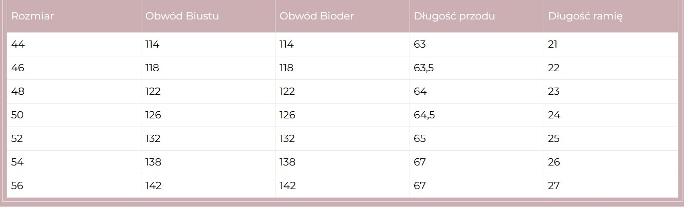 Aby dobrać odpowiedni rozmiar, pamiętaj, że podane wymiary w tabeli dotyczą produktu mierzonego na płasko.