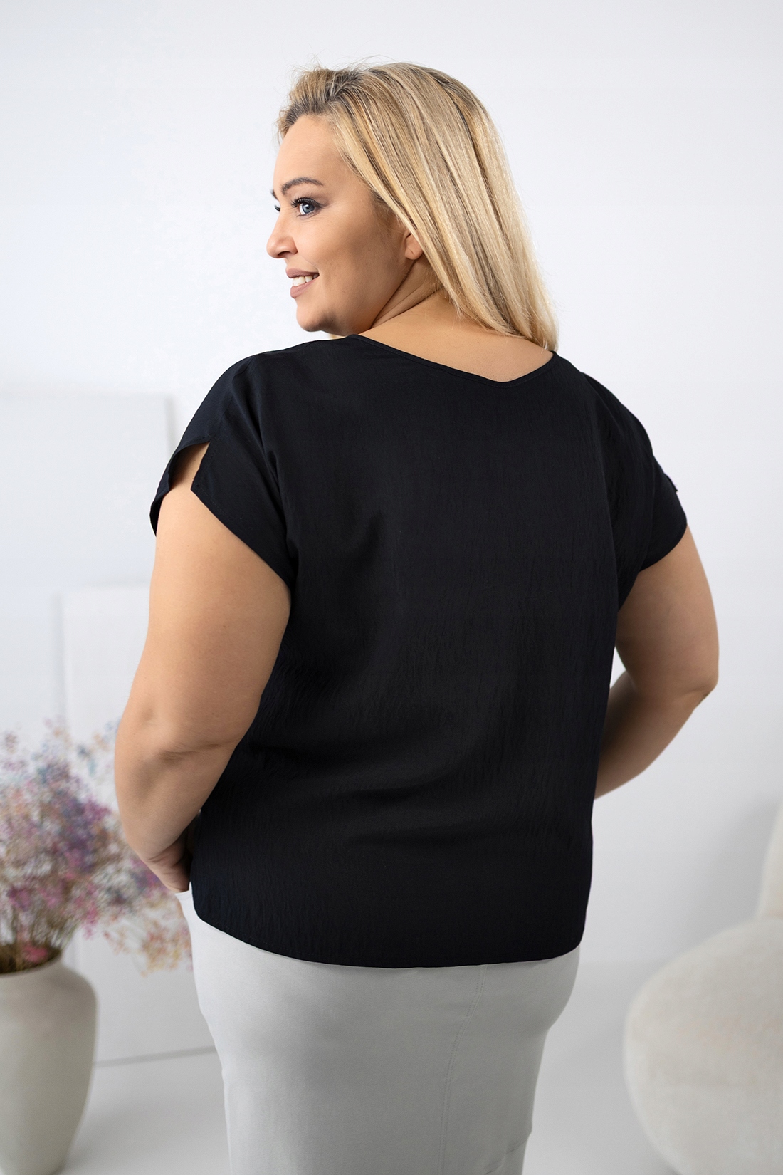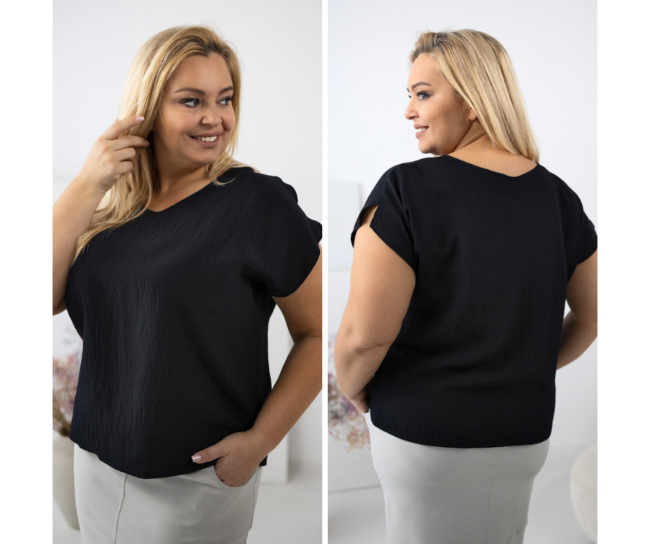 Top Sandra  gładka bluzka kimono z dekoltem w szpic kolor czarny rozmiar 54Styl, wygoda i kobieca lekkość – Top Sandra to must-have w letniej garderobie!
