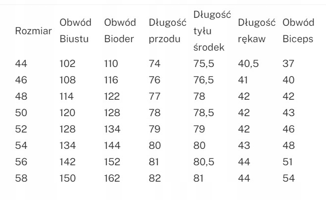 Twój wymiar powinien być mniejszy o 4-6 cm od wartości podanej w tabeli.